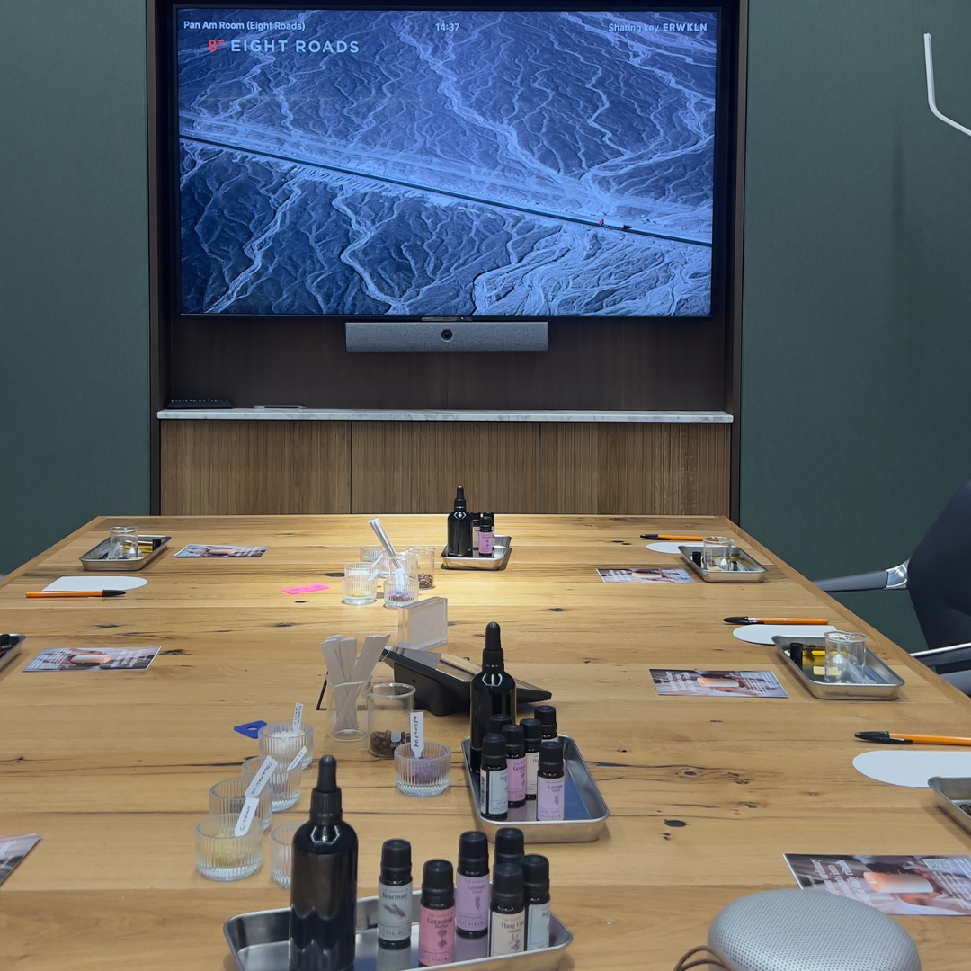 Elevate your special occasions with our bespoke aromatherapy workshops. Whether you're planning a birthday celebration, hen do, or corporate team-building event, our private workshops bring a unique sensory experience to your chosen venue. We've hosted intimate gatherings in private homes, corporate workshops at companies like Eight Roads Ventures in their City office, the NHS for team outing day, and exclusive sessions at Grey Wolfe private members' club. You can read some of reviews below.